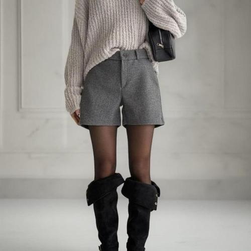[다잇템][다잇템] 여성 FW 편한 미니멀리즘 3부 페이크울 속밴딩 반바지_24155595_588872