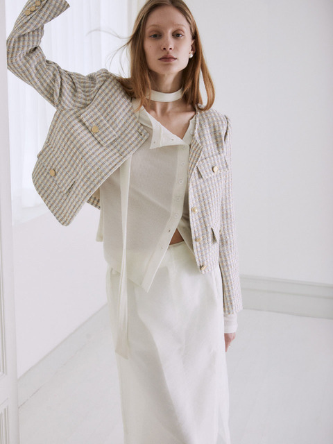 [뮤제] [Fabric From JAPAN] SABRINA Crop Tweed Jacket_Blue Tweed