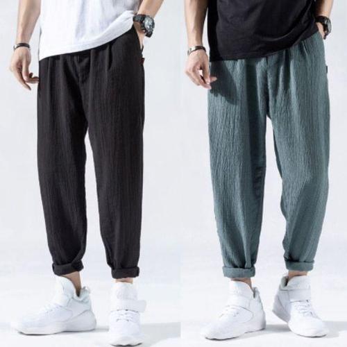면 린넨 캐주얼 하렘 팬츠 남성 조거 팬츠 남성 여름 바지 남성 중국 스타일 배기 팬츠 2025 하라주쿠 의류
