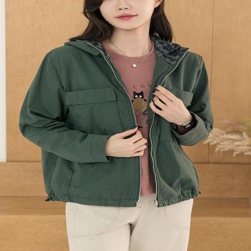[디얼마미][디얼마미] 와우 체크 후드 점퍼 /마담 미시 중년 여성 빅사이즈 40대 50대