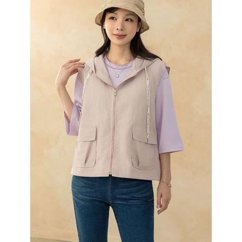 [디얼마미]레터링 스트링 후드 조끼 /마담 미시 중년 여성 빅사이즈 40대 50대