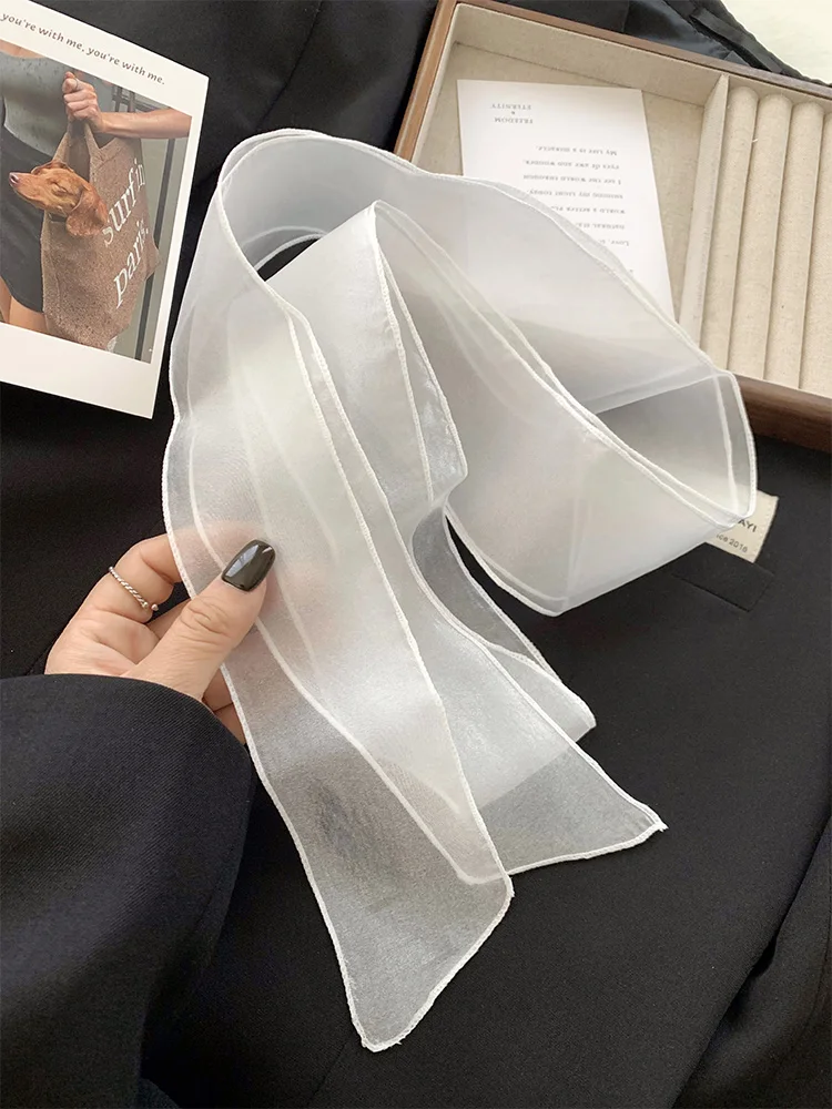 우아한 얇은 오지스 실크 스카프 여성용 봄 여름 긴 스트립 가벼운 플로티 반다나 트렌디한 한국 스타일 다용도 스퀘어