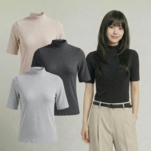 [화이트빌딩]여성 기모 5부 반폴라 티셔츠 겨울 보온 레이어드 이너 기본티