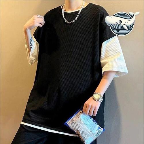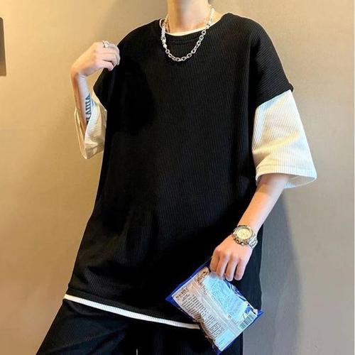 [에이치플러스몰]편안한 남성 5부 여름 레이어드 반팔 아이템