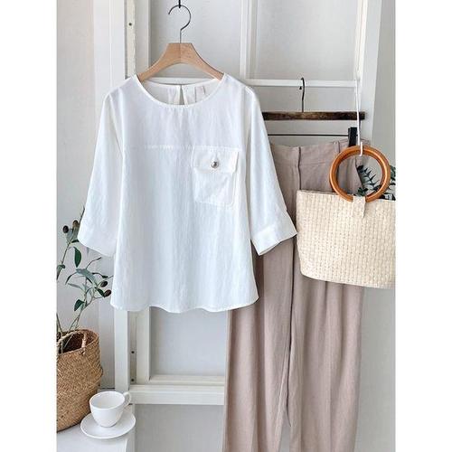 [샵앤]국산 여성 심플 루즈핏 5부 여름 블라우스 REI-WBL-4642-아이보리