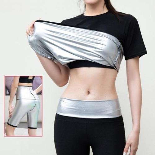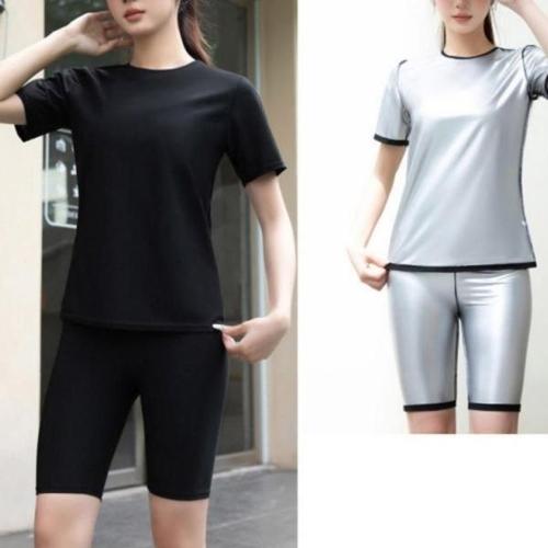[엄지척]여성 트레이닝 피트니스 슬리밍 반팔5부 땀복상하세트_20434795_667501