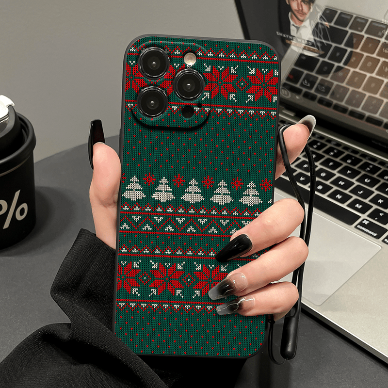 TEMU 폰 케이스: 원피스 크리스마스 트리 눈송이 그린 도트 라인 패턴 스타일리시하고 다용도 하드 쉘 랜야드 디자인 블랙 폰 케이스 충격 흡수 및 낙하 방지 편안한 그립 아이폰 시리즈 11-17 Pro Max 시리즈 호환