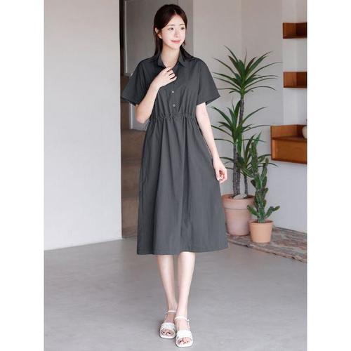 [드리다]여성 여름 스트링 카라 바스락 반팔 원피스 40-50대 미시 엄마옷 캐주얼 등원 출근 모임