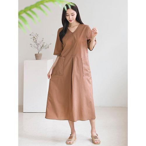 [드리다]여름 브이넥 바스락 빅사이즈 맥시 롱 원피스 40-50대 미시 중년여성 엄마옷 하객 학부모 모임