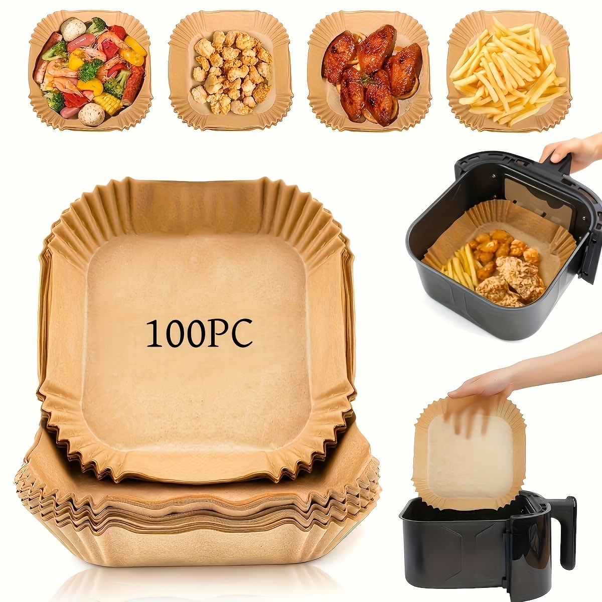 TEMU [ 오일 흡수 에어프라이어 라이너 ] 100개입 오일 흡수 & 눌러붙지 않는 사각형 에어프라이어 라이너, 2-8쿼트 에어프라이어 호환, 튀김, 베이킹, 요리 및 전자레인지 사용에 완벽 - 필수 주방 액세서리, 가정 및 상업용