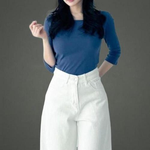 [다잇템_패션]여자 U넥 칠부 무지컬러 코튼100 티셔츠