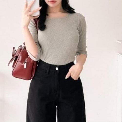 [다잇템][다잇템] 여성 라운드 면원단 칠부 미니멀리즘 티셔츠_23500311_588872