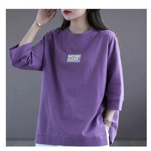 [다잇템]여성 U넥 면원단 필기체 칠부반팔 티셔츠