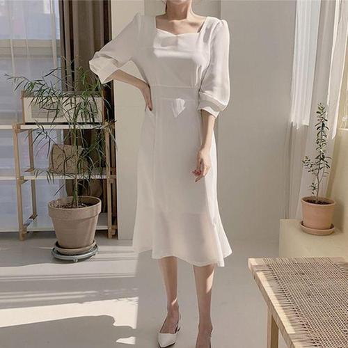 [셀럽하우스]슬림 YXTJ8496 소매 7부 원피스 롱원피스 무지 기본 라운드