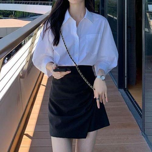 셔츠 블라우스 여성 7부 오버핏 심플 프릴 WFK5SWN