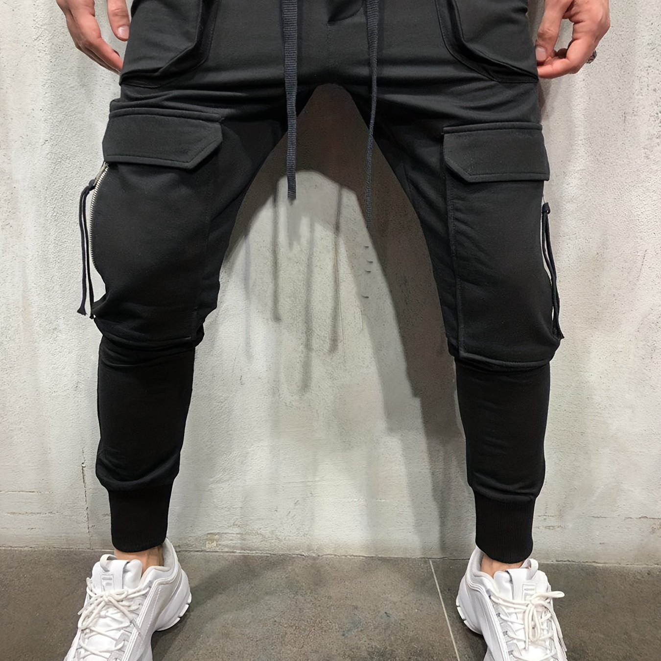 TEMU 남성용 가을/겨울 카고 바지, 다중 포켓, 단색, 탄성 허리 밴드, 드로스트링, 하렘 스타일, 편안함, 스타일리시, 캐주얼 조거 팬츠 (스포츠용)