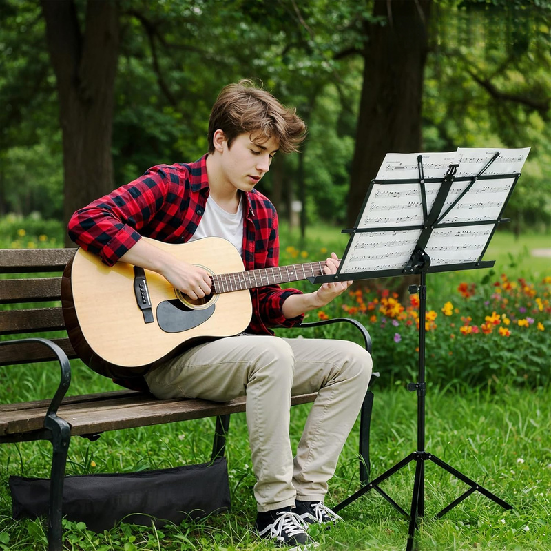 TEMU 휴대용 악보 스탠드 & 북 홀더 - 내구성 강한 조절 가능한 높이 (최대 54인치) 접이식 경량 스탠드, 악보 클립 및 캐리 케이스 포함, 피아노, 기타, 바이올린용 - 학생, 음악가, 공연에 이상적