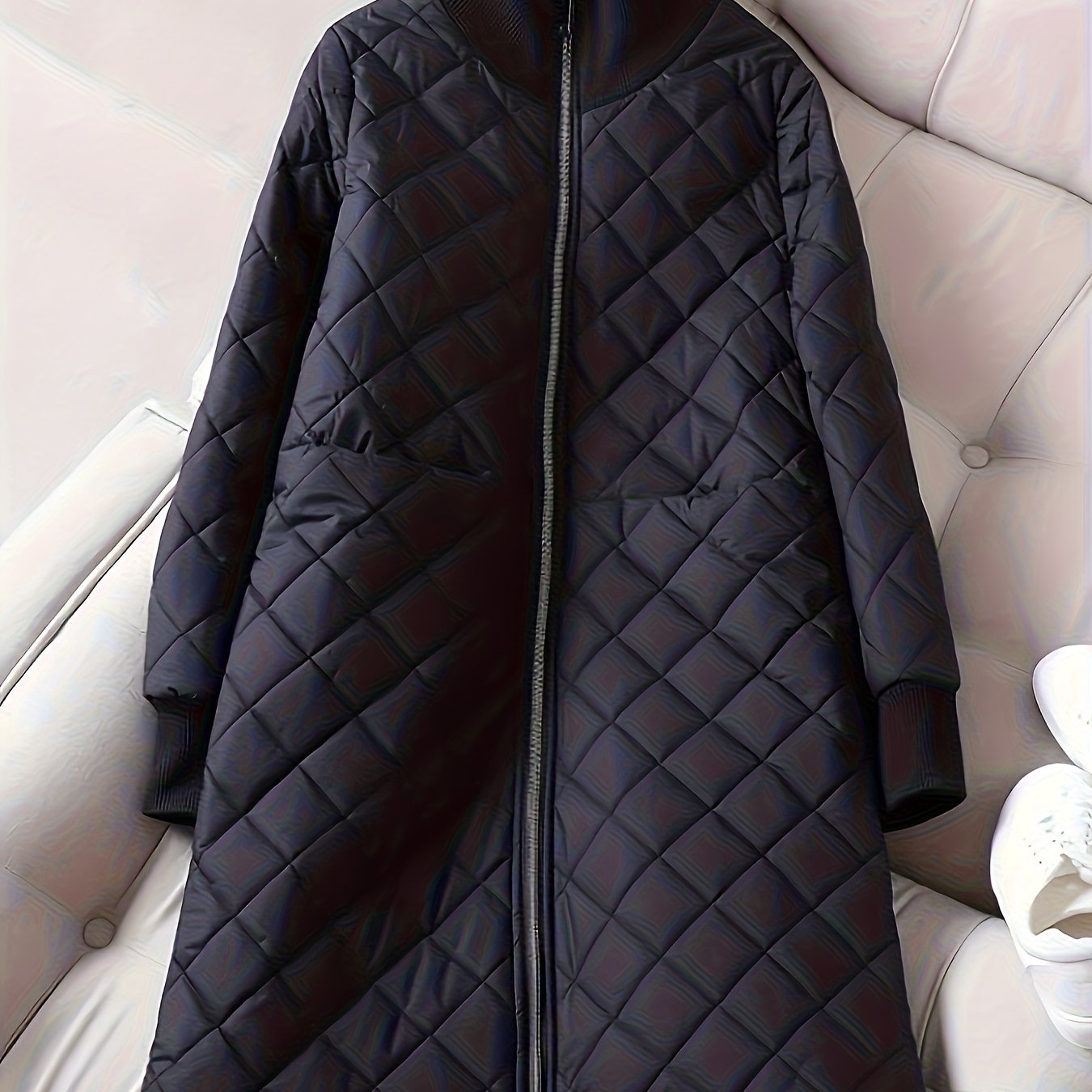 TEMU YY0805115 여성 겨울 코트, 커뮤터 순수 체크 스탠드 칼라 미디엄 재킷