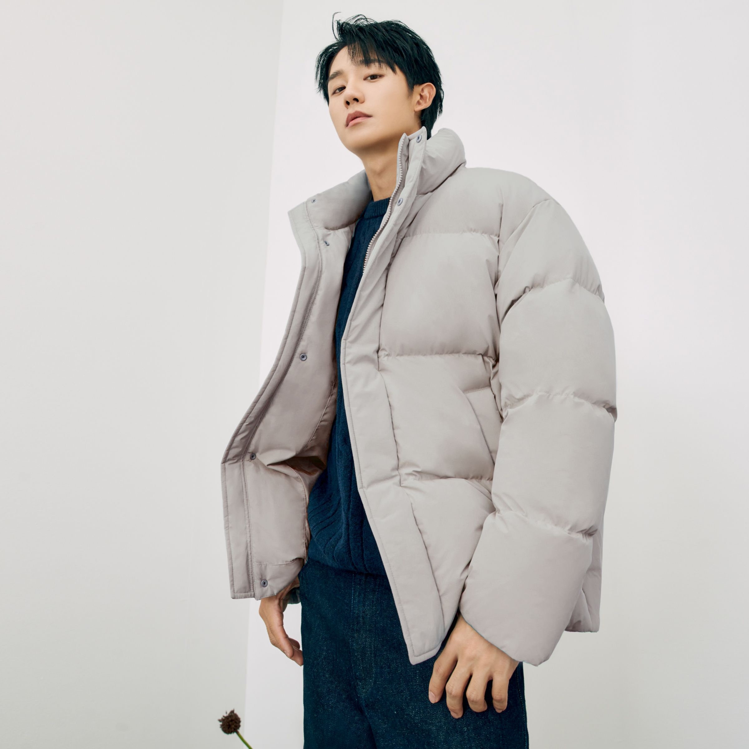 [에잇세컨즈] 하이넥 숏 다운 점퍼 라이트 그레이 (114Y38BY12)