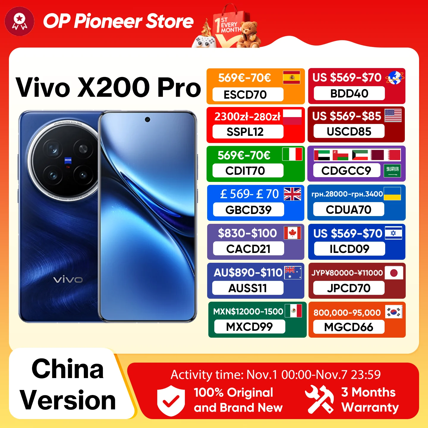 중국 버전 VIVO X200 PRO 5G 크기 9400 CPU 6.78 인치 AMOLED 120HZ 화면 6000mAh 90W 플래시 충전기 OTA NFC 50MP 카메라