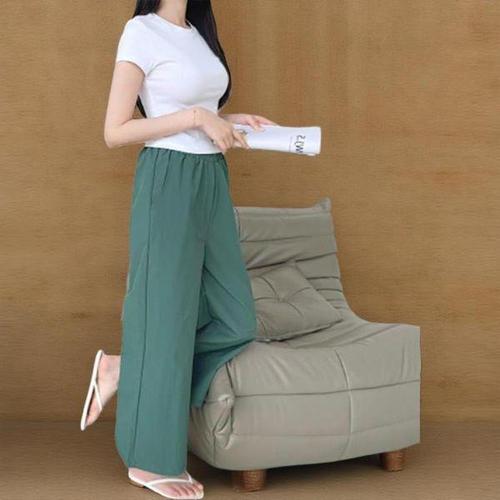 [신상오픈런]여성 여름 기본 컬러 와이드 바지 밴딩 9부 팬츠