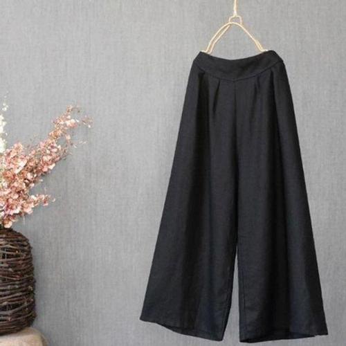 고품질 9부 쿨 바지 린넨 여성 여름 와이드 빅사이즈 밴딩 통바지 여성밴딩바지 여성봄바지 (WFHZDS0)