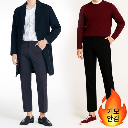 [디바옴므]심플 9부 기모안감 스판 슬랙스 겨울 정장 바지 팬츠 남자 남성
