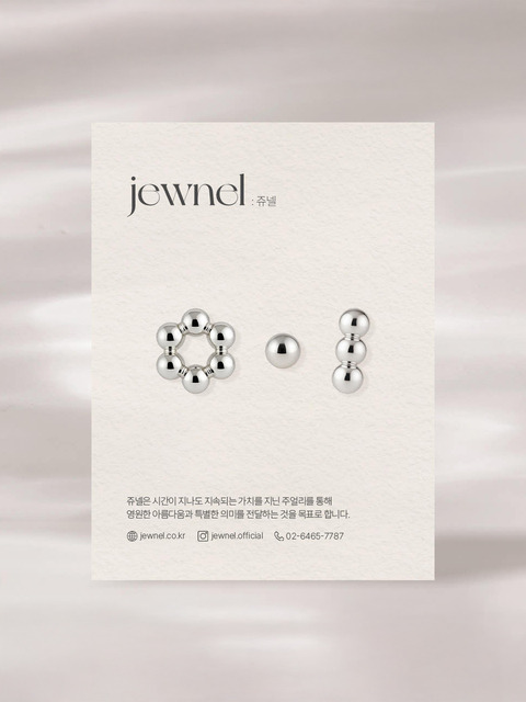 [쥬넬] [3개세트]Silver925 퓨어 데일리 오각 진주 볼 하객룩 피어싱 세트