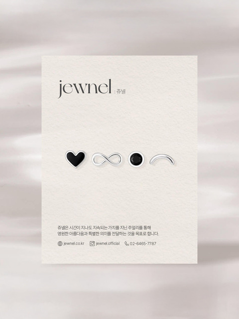 [쥬넬] [4개세트]Silver925 모던 블랙 하트 인피니트 꼬임 피어싱 세트
