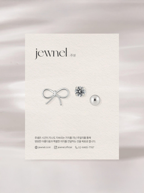 [쥬넬] [3개세트]Silver925 심플 데일리 올메탈 리본 큐빅 볼 피어싱 세트