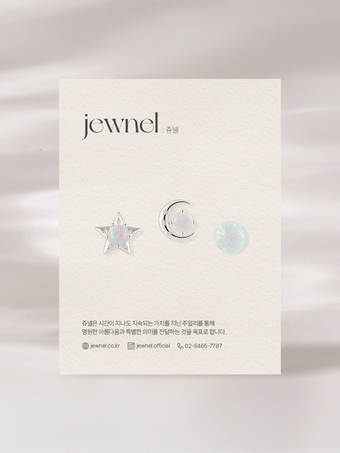[쥬넬] [3개세트]Silver925 오로라빛 밤하늘 오팔 별 달 영롱 실버 은 피어싱 세트