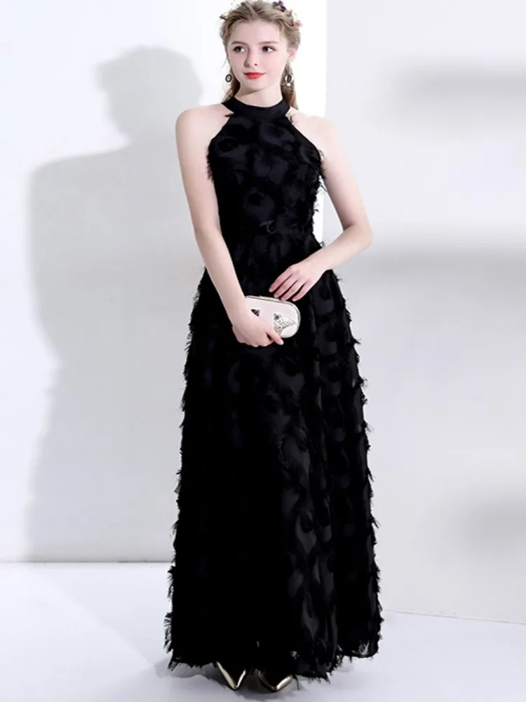 우아한 롱 이브닝 드레스, 태슬 넥 디자인, 생일 성인식 사회자, 하이 패션 감각, 스위트 스타일, 미드 웨이스트 A라인 스커트