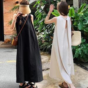 여자 봄 여름 가을 a라인 뷔스티에 민소매 끈나시 데님 청 롱원피스 간절기 썸머 등하원룩 나들이룩