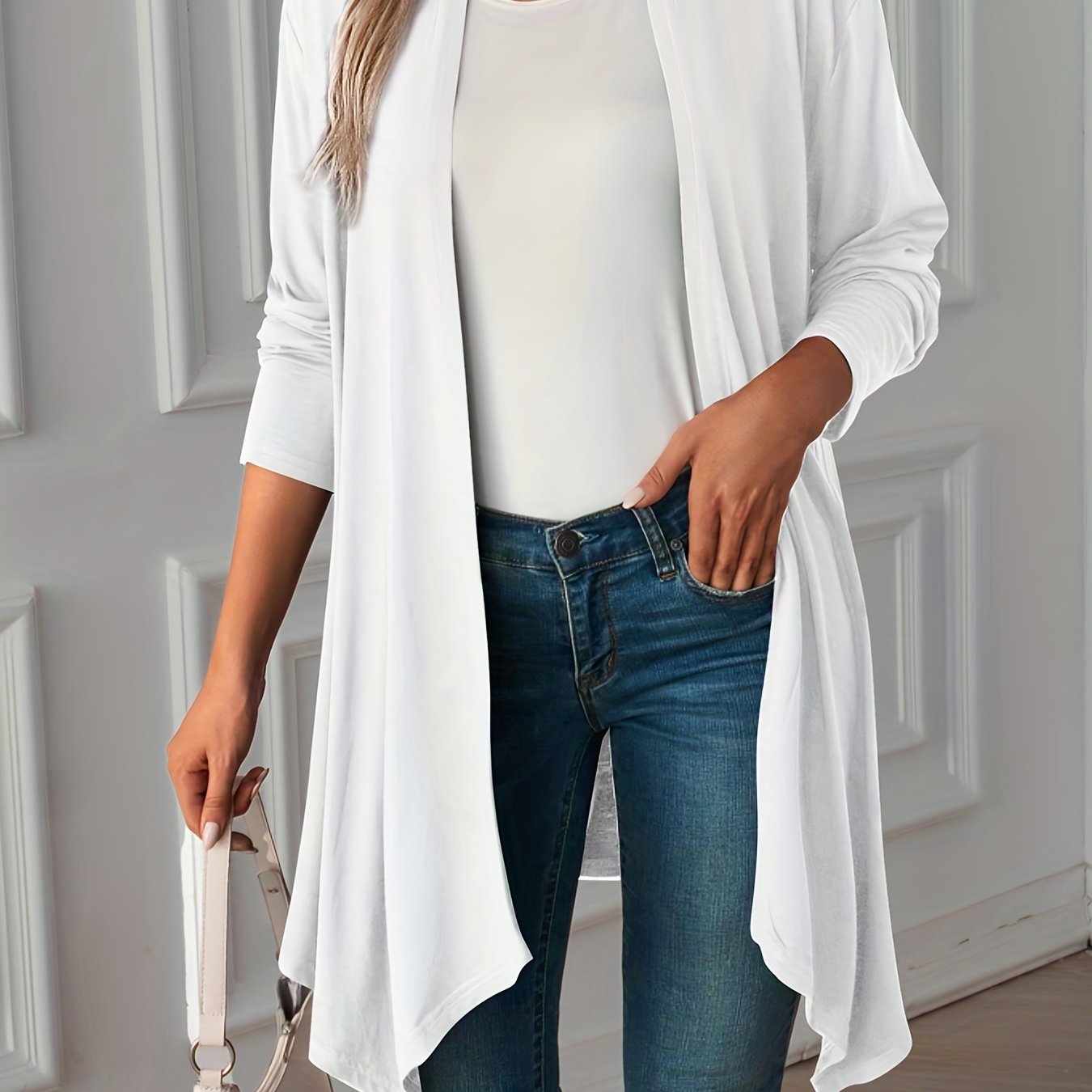 TEMU 플러스 사이즈 우아한 가디건, 여성용 플러스 솔리드 롱 슬리브 비대칭 헴 오픈 프론트 코트