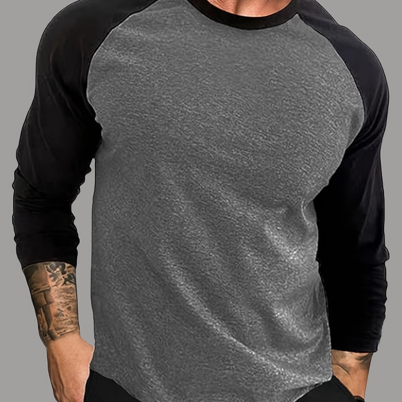 TEMU 남성용 라운드넥 래글런 소매 봄/가을 긴팔 티셔츠, 캐주얼 슬림핏 스트레치 소프트 티셔츠