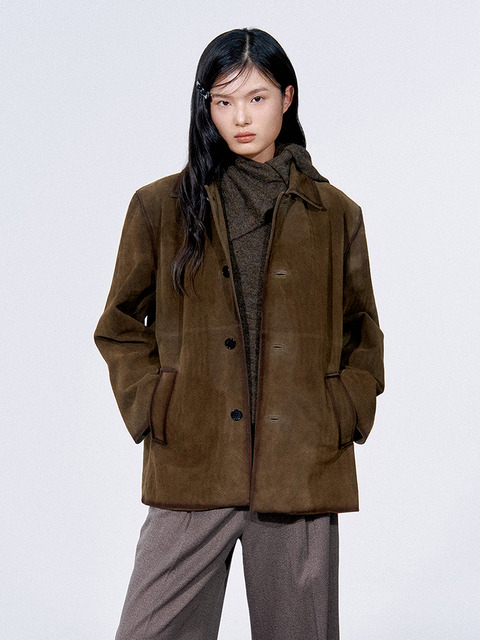 후크 버튼 양털 빅 카라 긴팔 자켓 (WICDJK001)