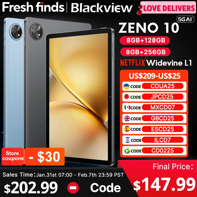 【세계 최초 공개】블랙뷰 제노 10 5G AI 태블릿 11인치 FHD+ 90Hz 디스플레이 와이드바인 L1 쿼드 스피커 8800mAh 안드로이드 15 패드 PC