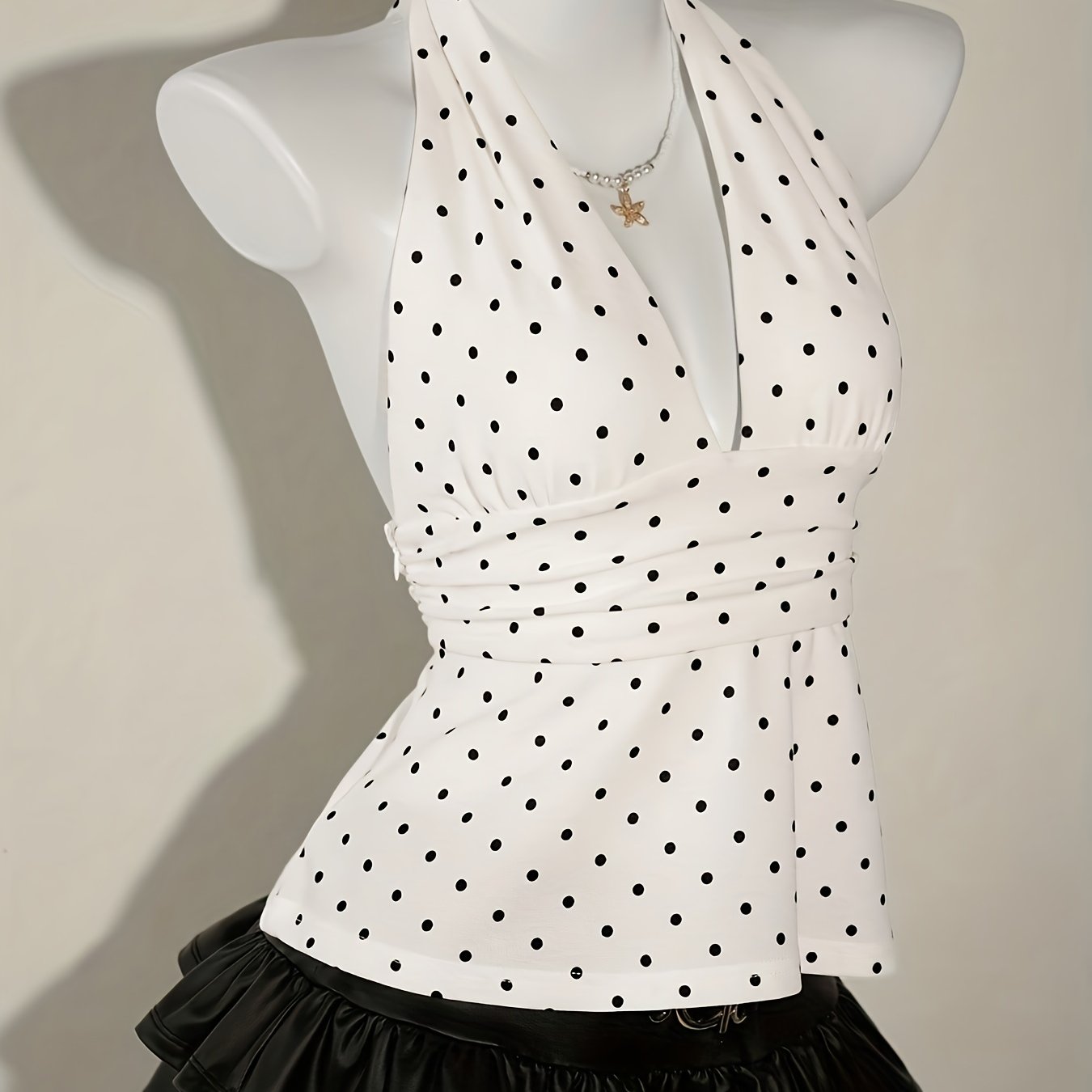 TEMU 여성용 물방울 무늬 프린트 플리츠 로우컷 V넥 숏 캐미솔