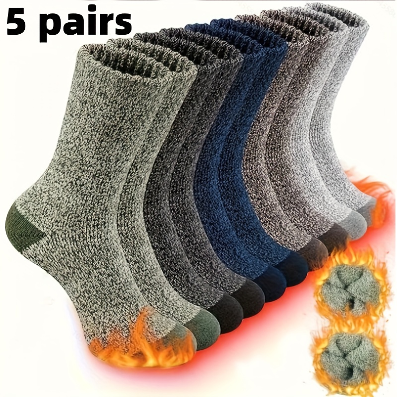 TEMU 5켤레 남성용 두꺼운 따뜻한 수건 양말, 남성용 겨울 미드 크루 양말, 야외 하이킹 양말, 루프 밑단 양말
