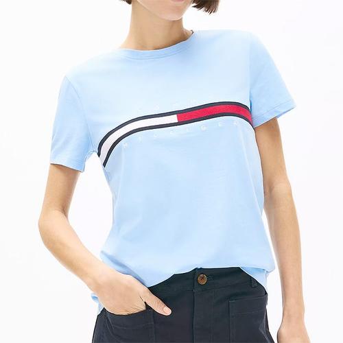 [해외배송] 타미힐피거 여성 플래그 로고 반팔티셔츠 Lt Blue