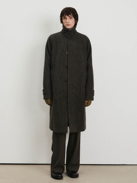 [쿠메] Men Melange Wool Balmacaan Coat, Khaki