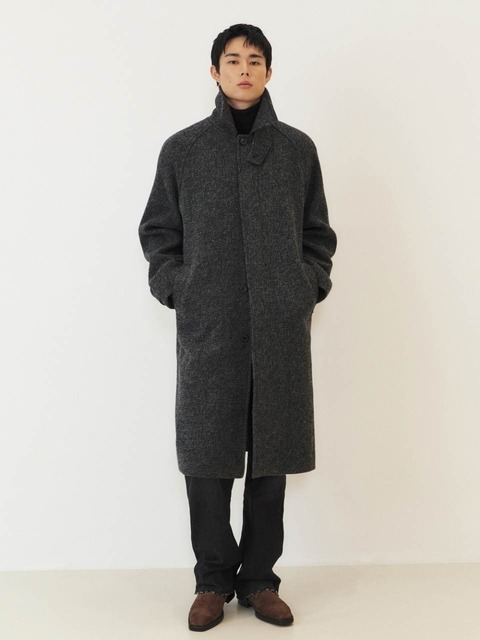 [쿠메] Men Melange Wool Balmacaan Coat, Charcoal