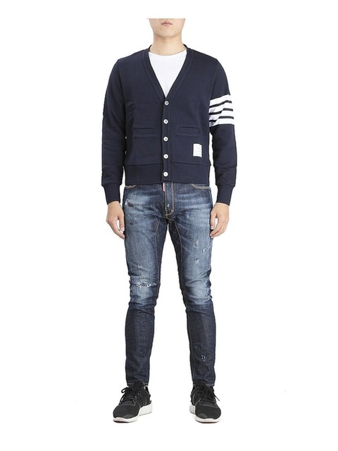 [톰 브라운] MJT167A 00535 415 남성 사선완장 코튼 가디건
