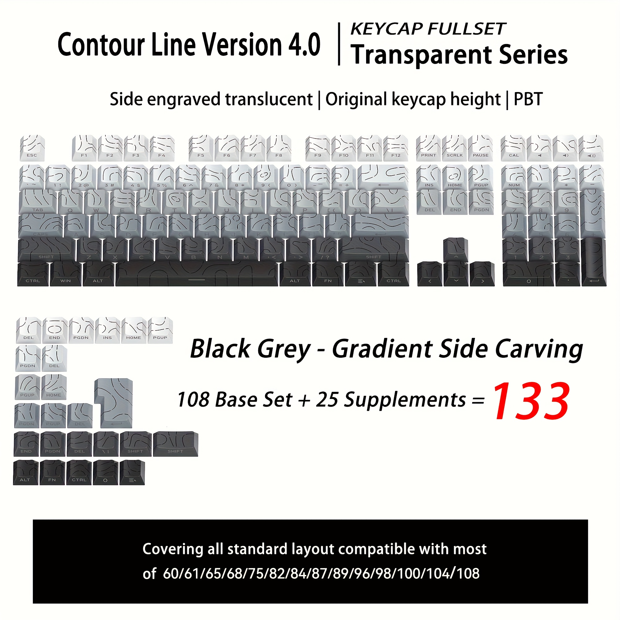 TEMU Tranquil Dawn 테마 크랙 백라이트 키캡 세트 | PBT+PC 재질, 체리 , 고내구성 사이드 프린트, 다이서림, 64/68/75/84/87/98/104/108 키 메카닉 키보드 호환, MX 스위치 호환, 백라이트 지원