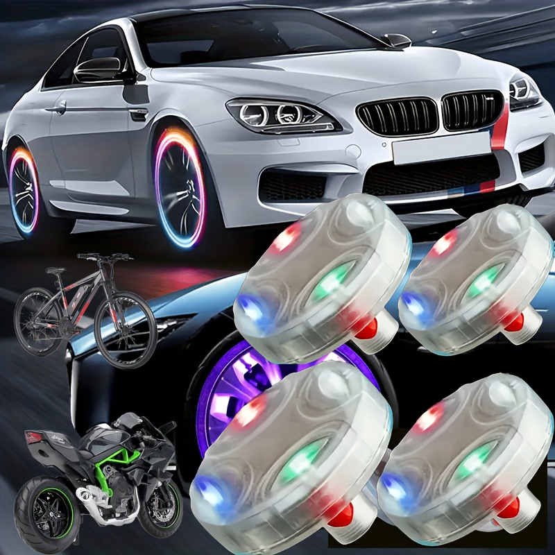 TEMU 2개/4개 세트 태양광 컬러 자동차 타이어 라이트, 휠 밸브 코어 주행등, IP66, 모션 센서 내장, 4가지 경고 모드로 안전성 강화, 자동차, 자전거, , RV 및 타이어 장식을 좋아하는 자동차 애호가를 위한 선물|타이어