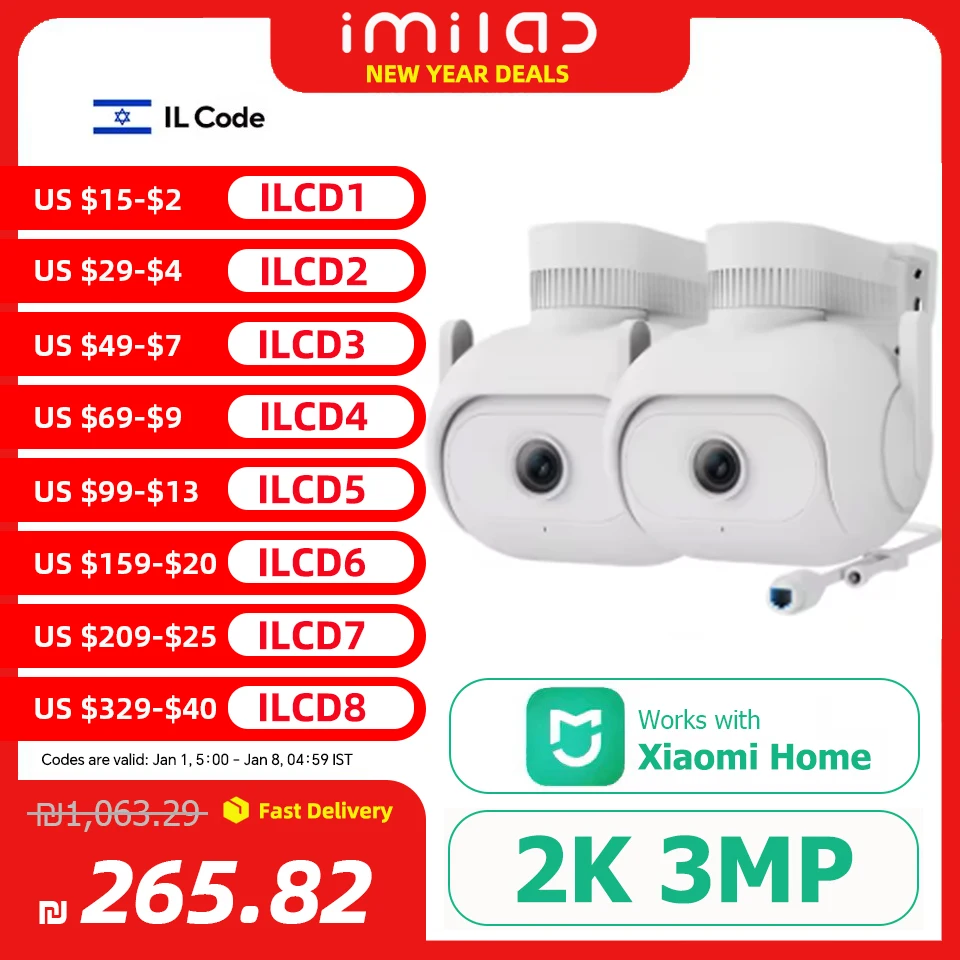 오리지널 IMILAB 2K 플러그인 투광등 스마트 WiFi 보안 카메라 실외 방수 IP66