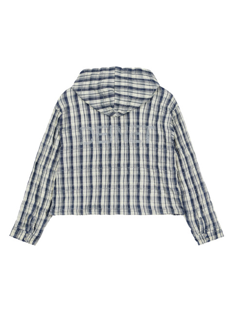 [다이닛] DEINET BACK LOGO CHECK HOODIE SHIRTS IN NAVY