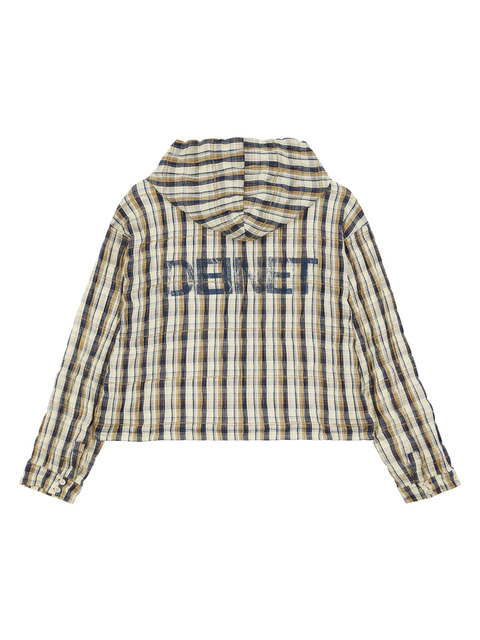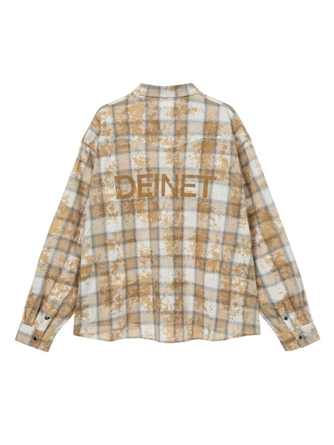 [다이닛] DEINET BACK LOGO CHECK HOODIE SHIRTS IN BROWN