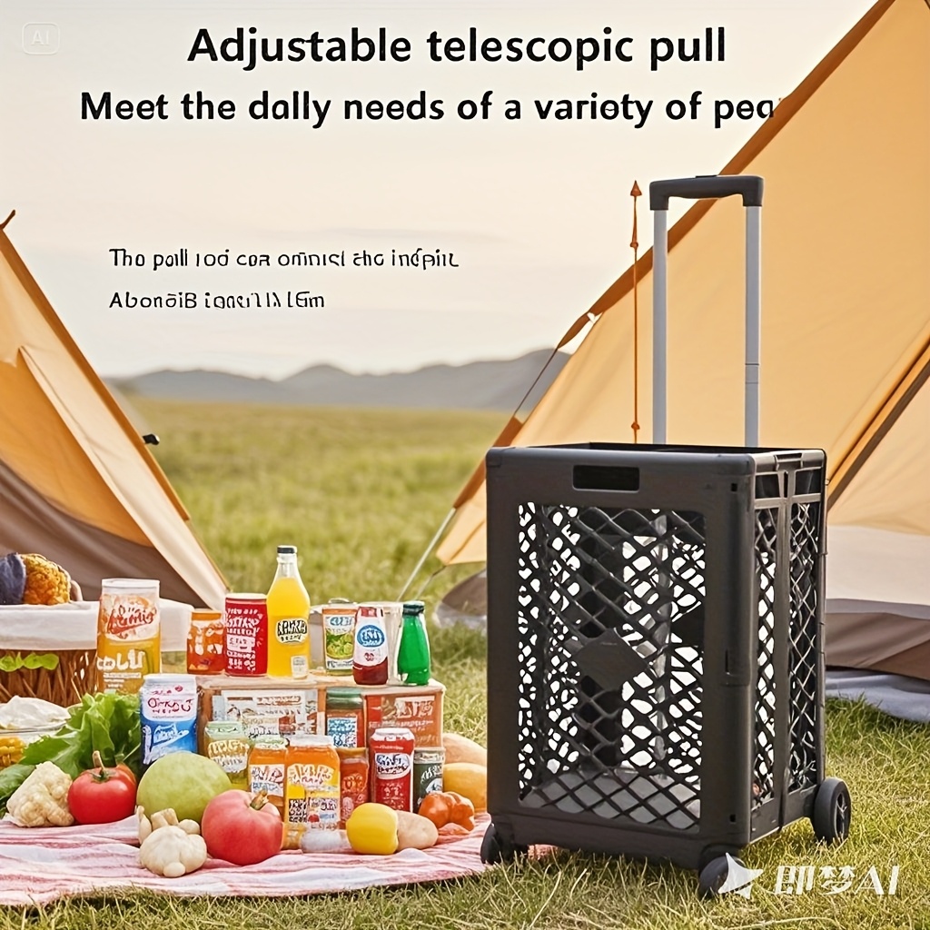 TEMU 55L 접이식 보관 카트, 4개의 바퀴 - 휴대용, 플라스틱 직사각형 함박, 분리 가능한 접이식 보관 정리함, 가정용 쇼핑, 세탁 바구니 접이식 플라스틱 트롤리, 주방 및 식사용, 검정색, 쇼핑 카트