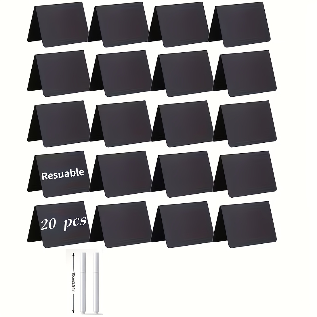 TEMU 22개 컬렉션 - 미니 칠판 간판 키트 (20개 간판 및 2개 지울 수 있는 펜 포함), 재사용 가능한 PVC 데스크탑 라벨 홀더, 수직 가격 태그, 소형 칠판 제품 라벨, 사무용품 및 추가품, 뷔페 및 파티에 적합